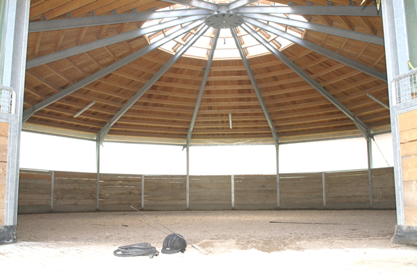 Unsere Longierhalle hat einen Durchmesser von 16 m und besitzt eine